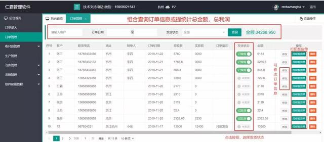 仁霸管理软件专门针对中小型销售工厂/企业量身定制,把货物订单录入系统,即可生成标准发货单,生产单,打印发货单发货;能随时查询订单信息,收付款信息,生产管理,已发/未发货情况;以及统计销量和总利润,财务分析,库存管理,满足日常生产销售需求。