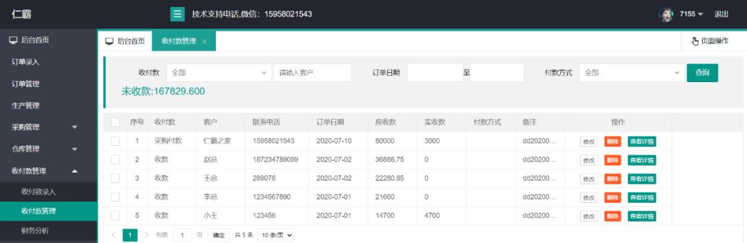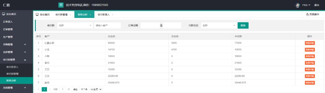 软件在订单录入时,收付款信息会自动对应到收付款管理界面里,不用重复录入,减少录单时间。